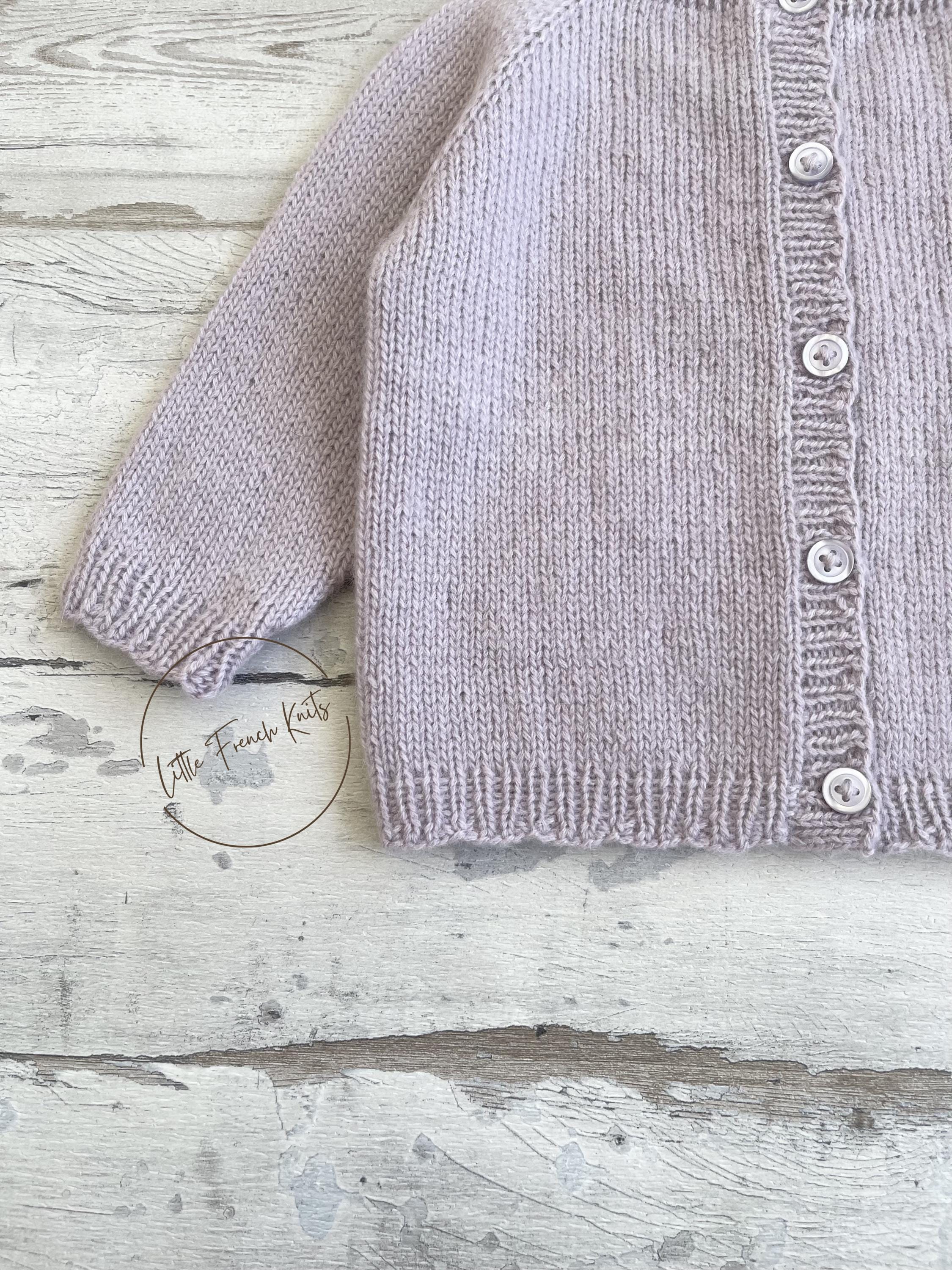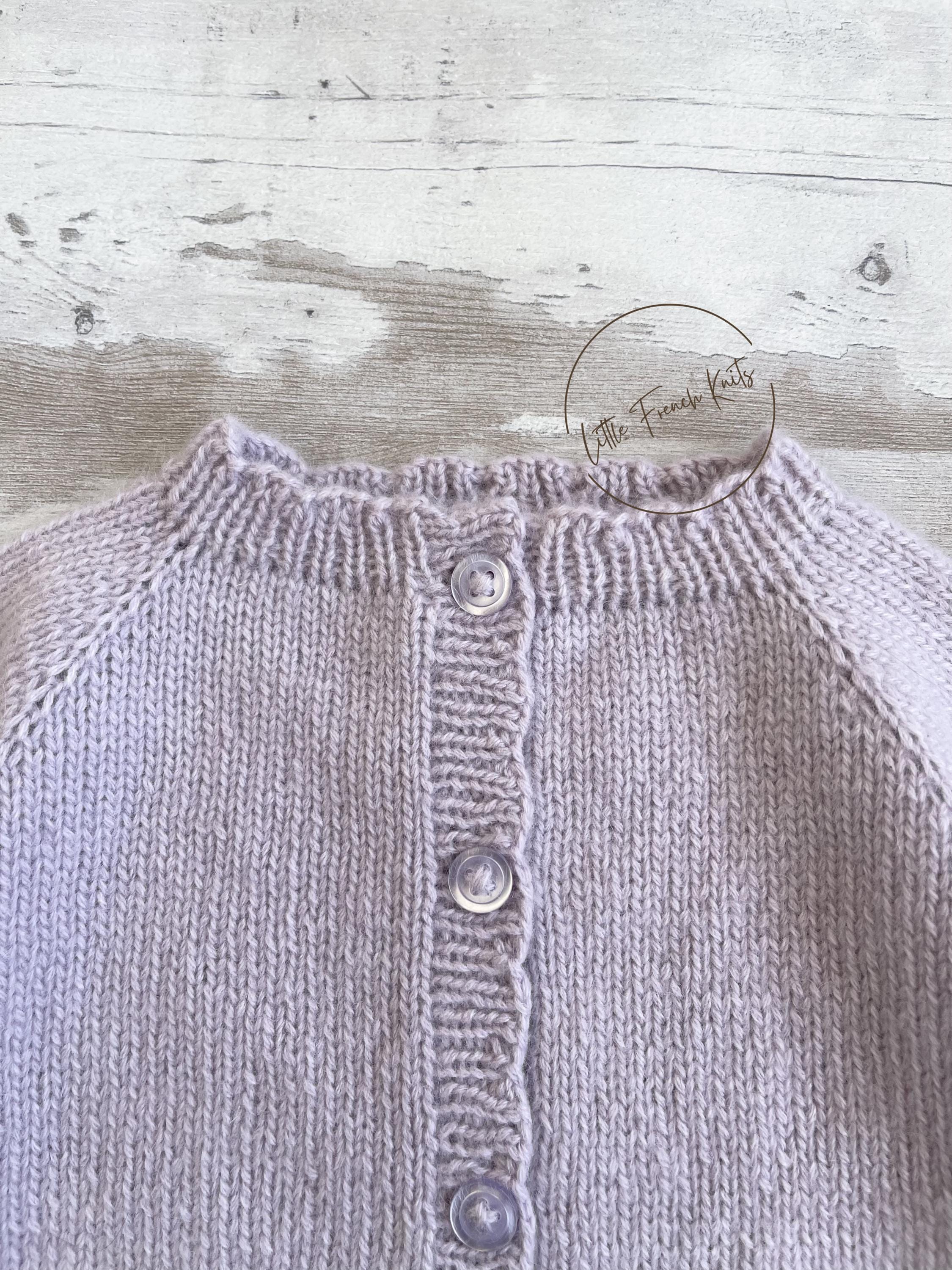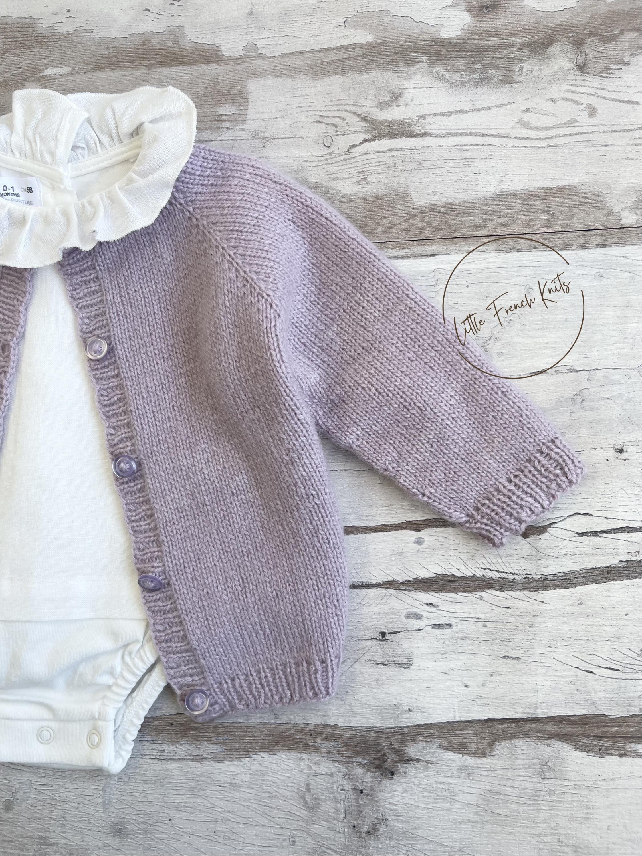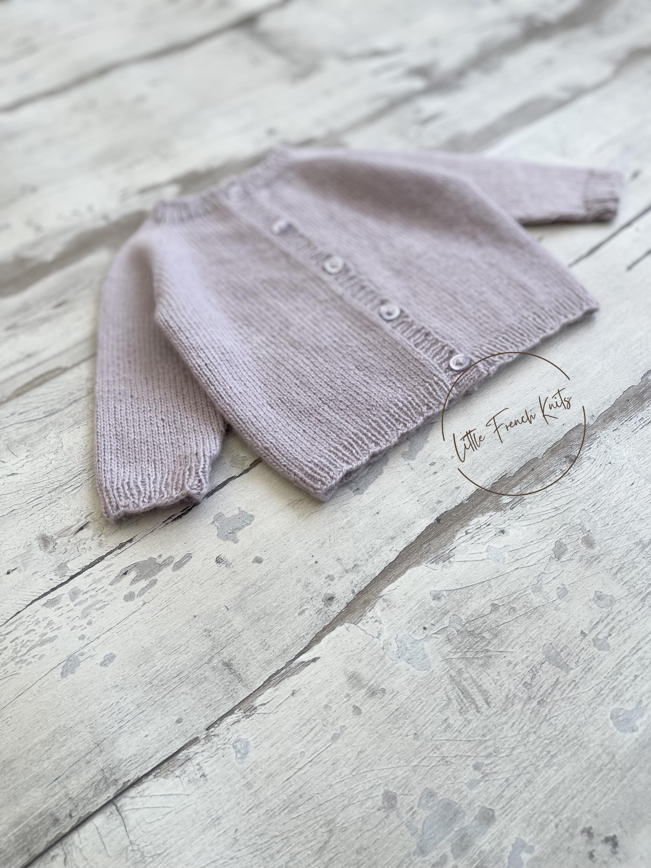 The Little Lavender is a timeless raglan cardigan knitted seamlessly from the top down, featuring long sleeves, softly rounded ribbed edges and a full front button fastening, designed to dress little ones from newborn to 4 years with comfort and elegance.