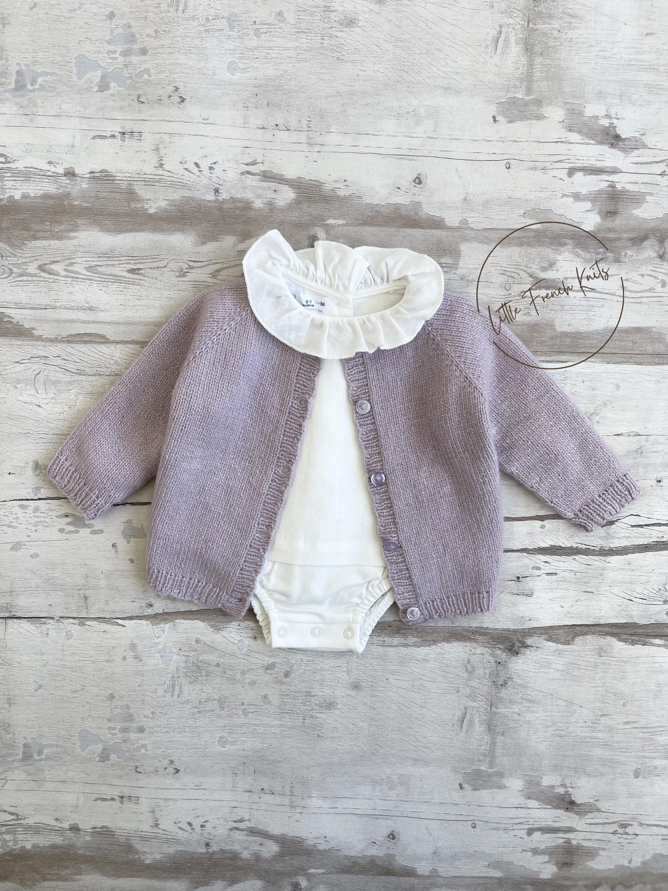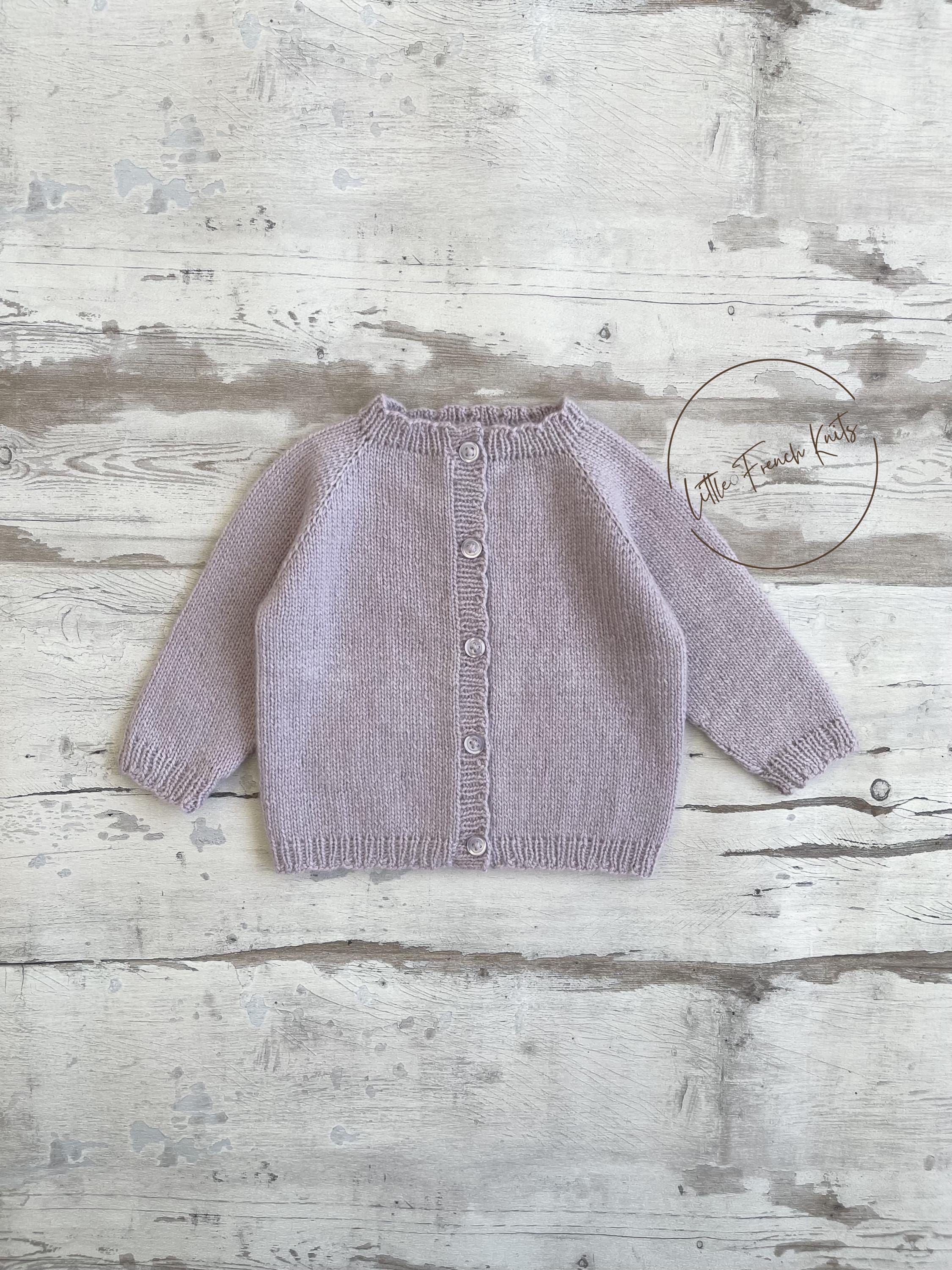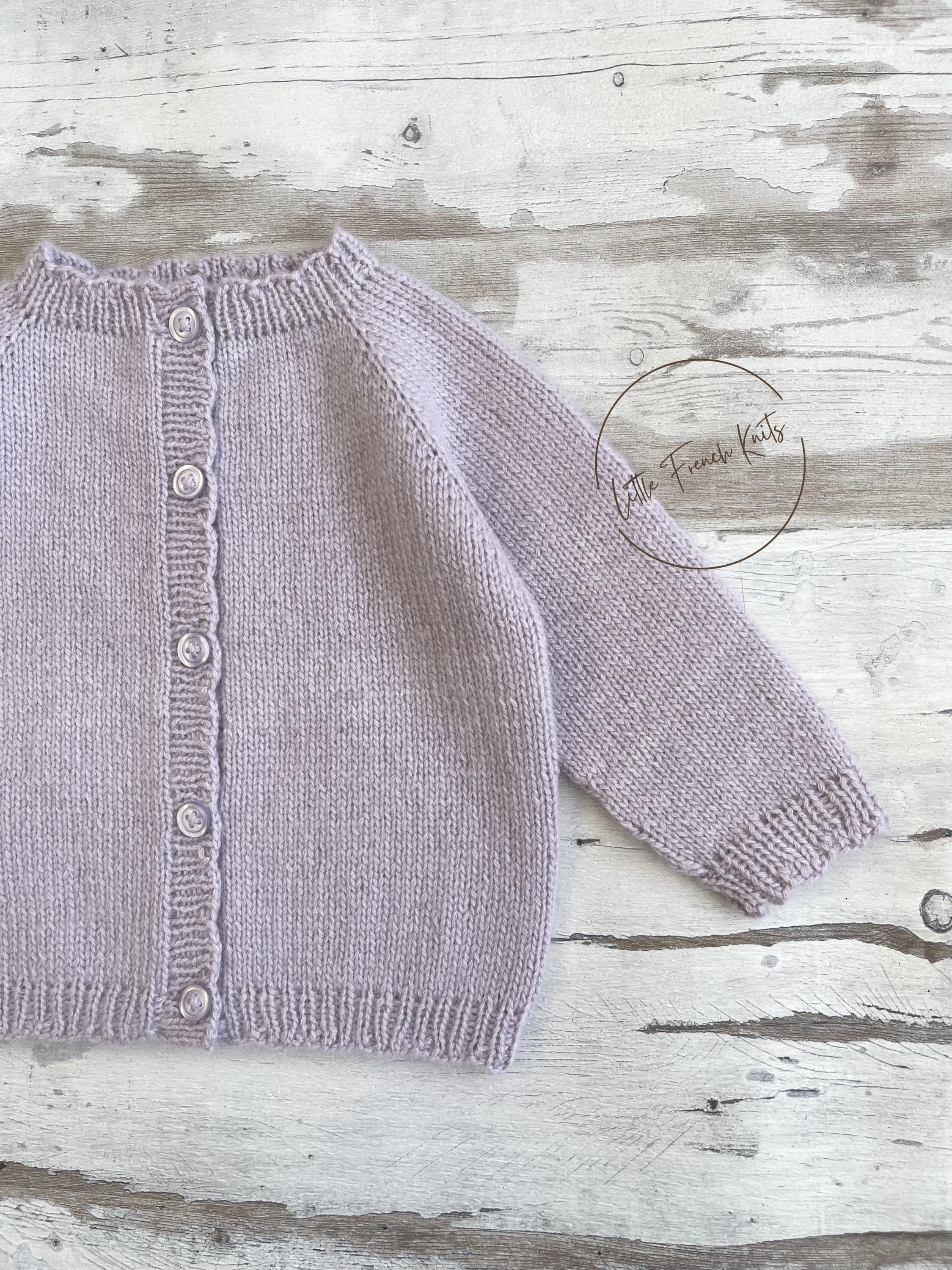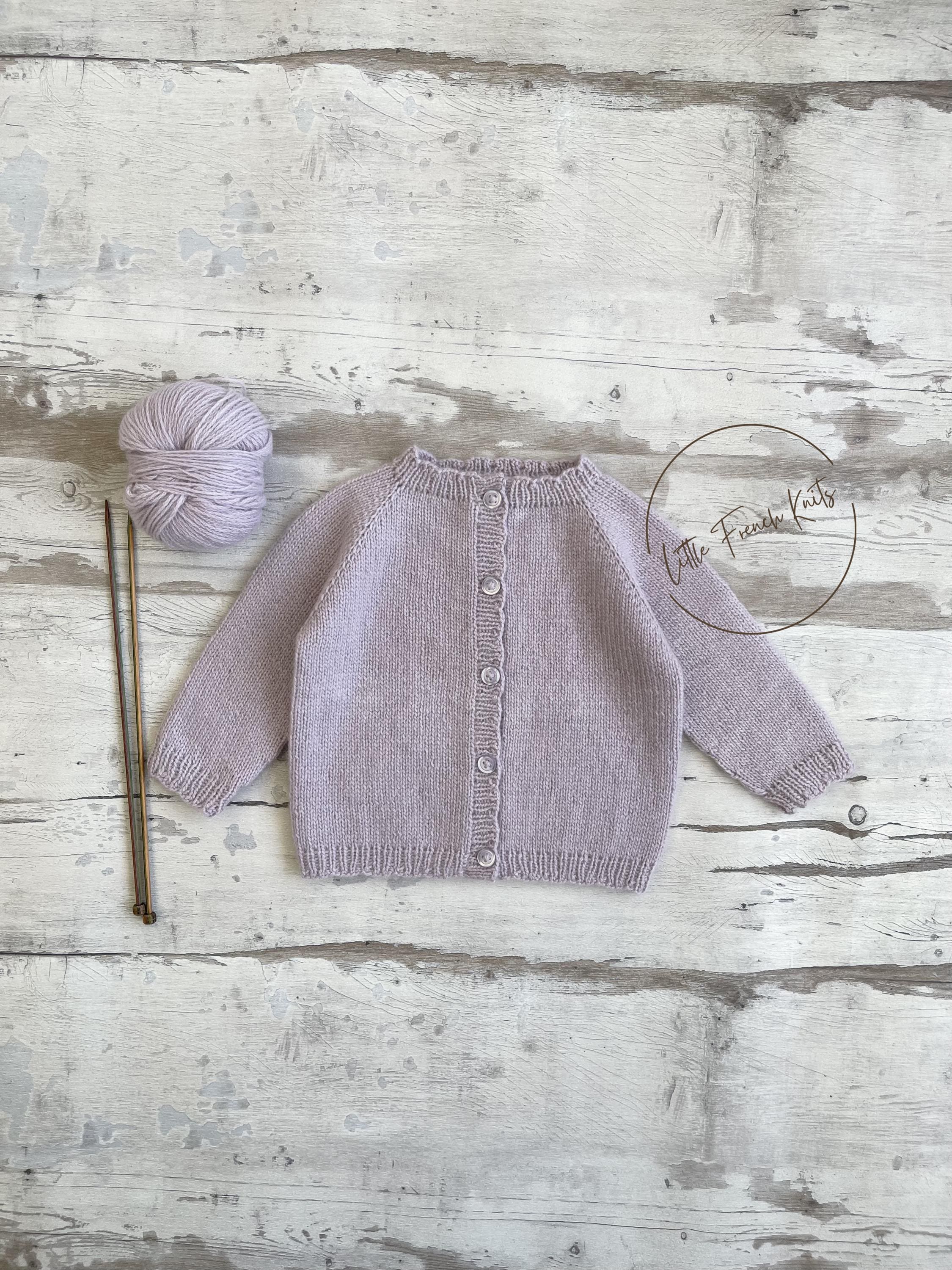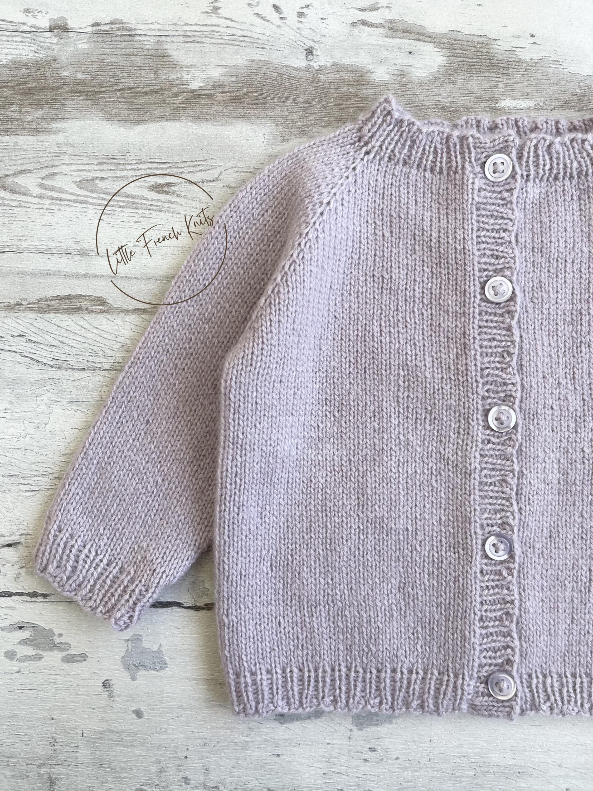 The Little Lavender is a timeless raglan cardigan knitted seamlessly from the top down, featuring long sleeves, softly rounded ribbed edges and a full front button fastening, designed to dress little ones from newborn to 4 years with comfort and elegance.
